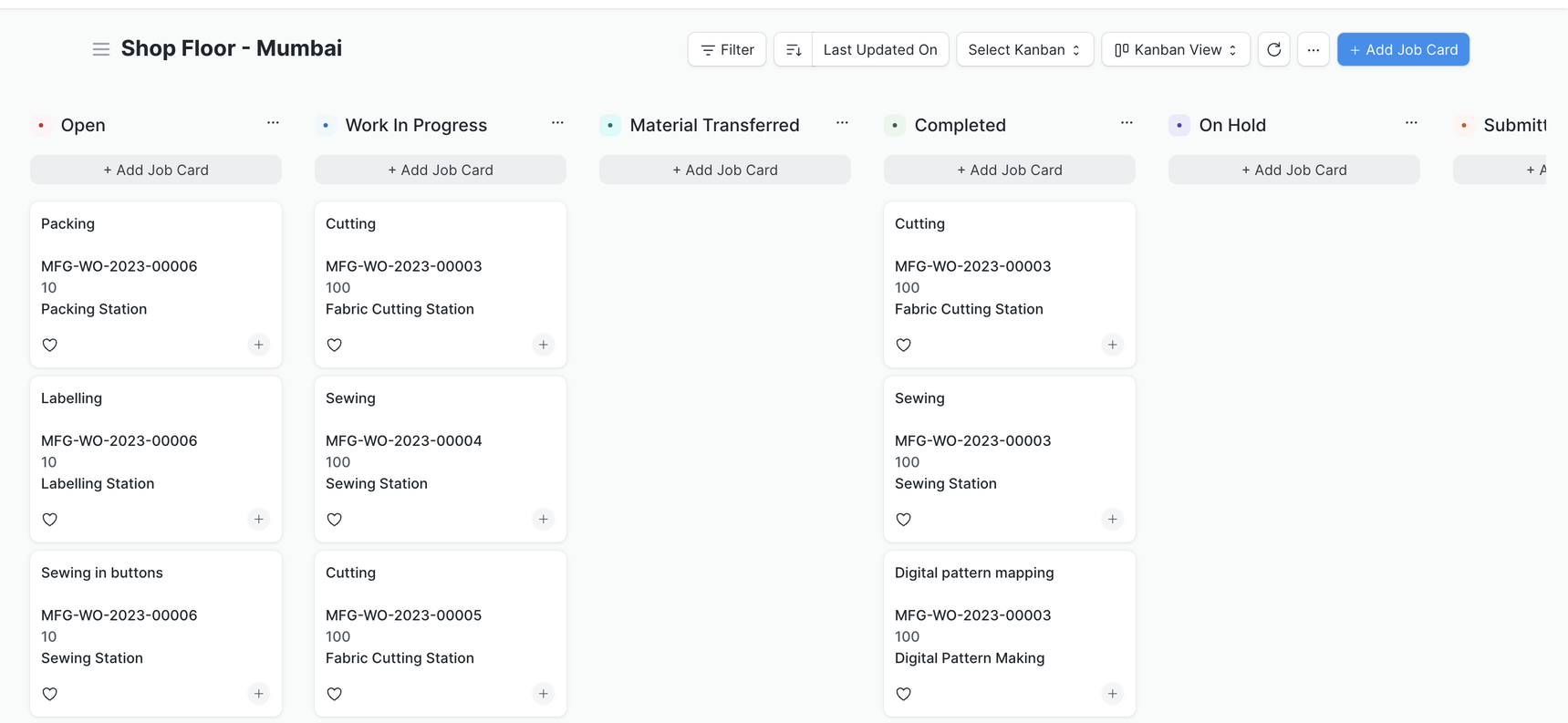 To create Kanban cards, go to "Manufacturing > Kanban > New." Set up Kanban cards for items with high consumption rates, such as wheels. When the inventory of wheels reaches a predefined level, ERPNext will automatically generate a production order to replenish the stock.