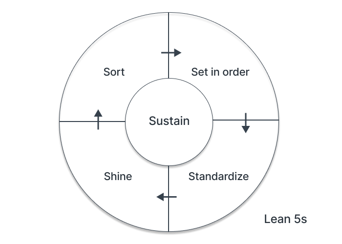 e) "Sustain": Establish a culture of continuous improvement, where employees uphold the 5S practices daily and actively contribute to maintaining an organized workplace.